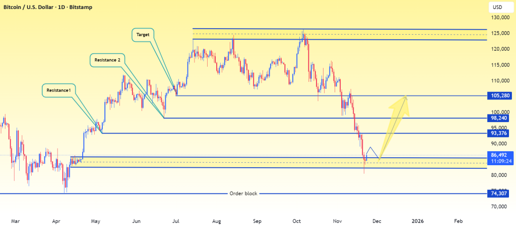 تحلیل تکنیکال بیت کوین (BTCUSD) – تایمفریم روزانه قیمت بیت کوین پس از یک افت اصلاحی شدید، اکنون به یک