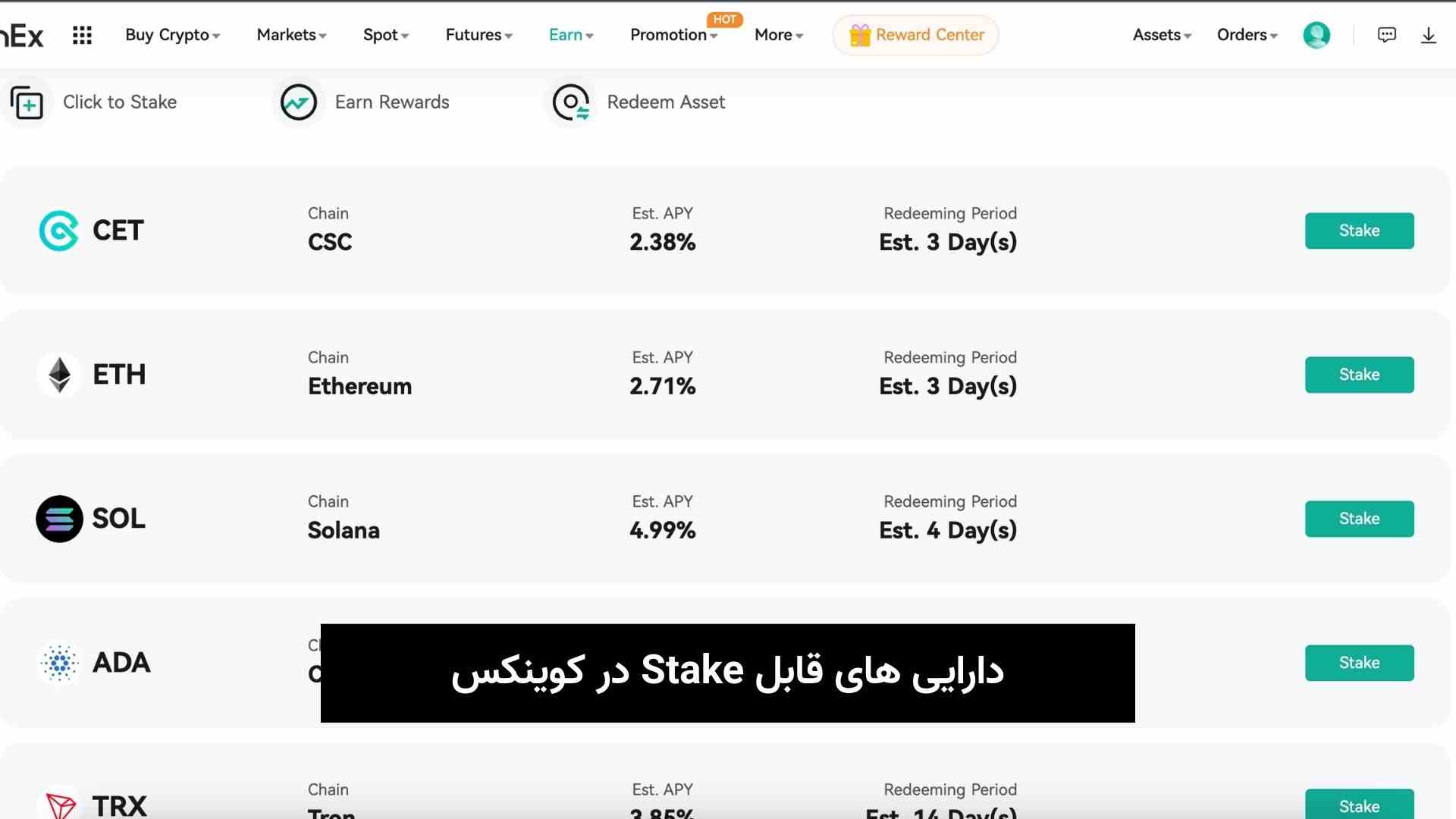 دارایی های قابل Stake در کوینکس